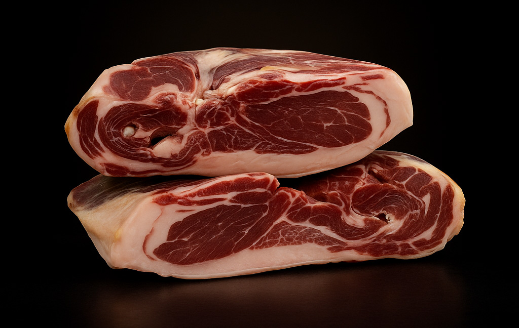 Pieza más pequeña y estilizada que el jamón, procedente de las extremidades delanteras de cerdos ibéricos criados en libertad y alimentados con bellotas durante la montanera. Curada con mimo, destaca por su jugosidad y sabor intenso e inigualable.